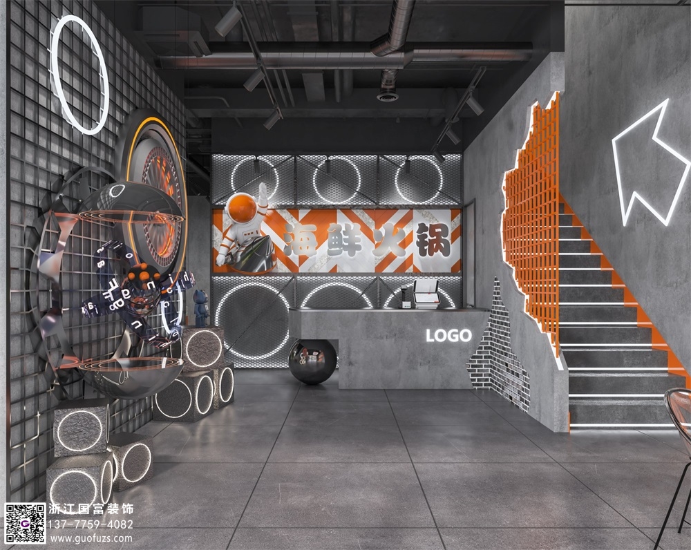 科技風(fēng)火鍋店裝修設(shè)計(jì)案例效果圖